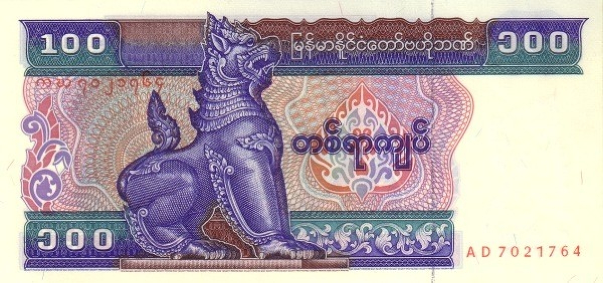Банкнота Бирма.Мьянма 100 кьят 1994-96 г. /Работы по традиционной декоративной штукатурке/ UNC