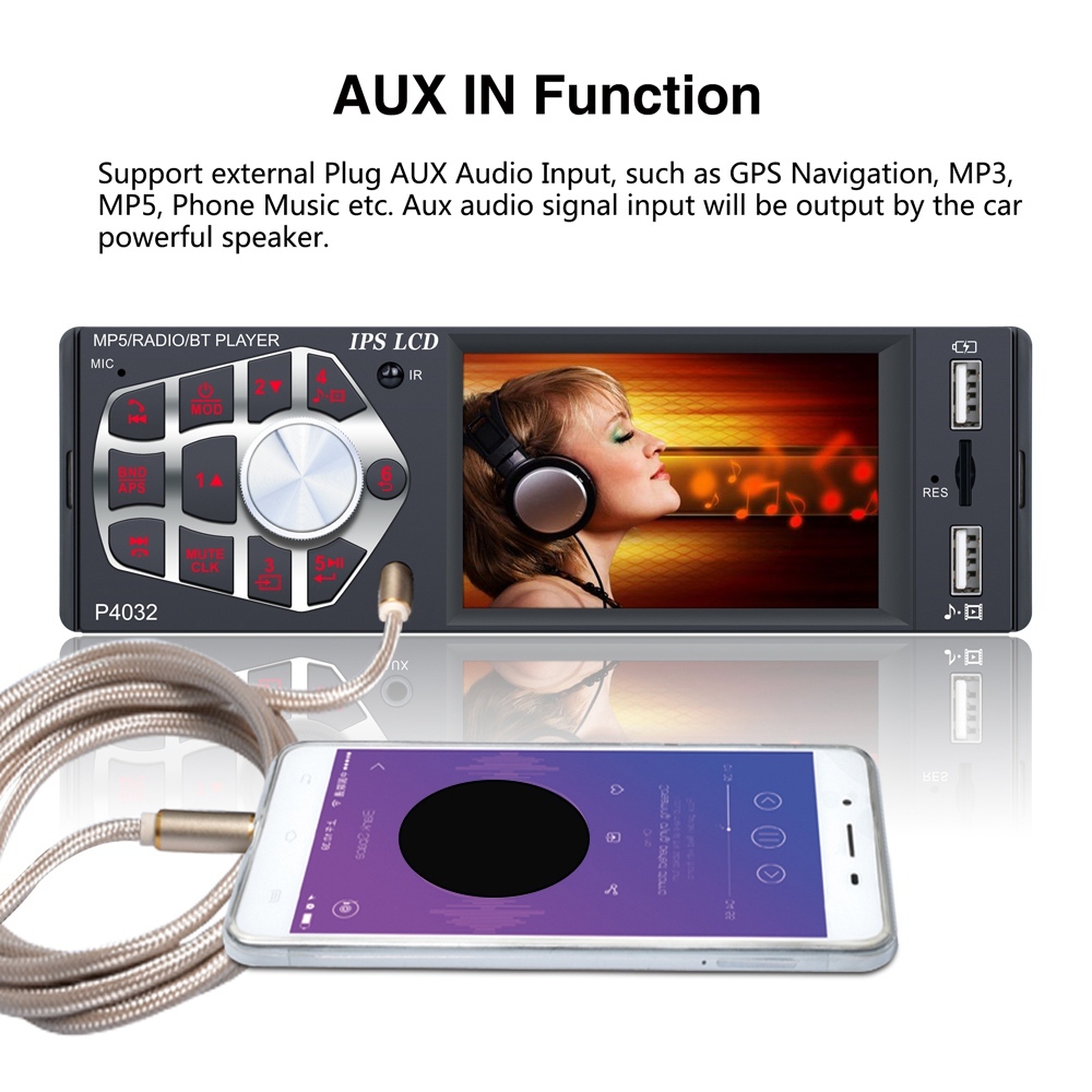 3.8-дюймовый автозапуск Bluetooth Auto Audio MP5 Player Car Radio FM 1 DIN Radio Player Control с микрофоном