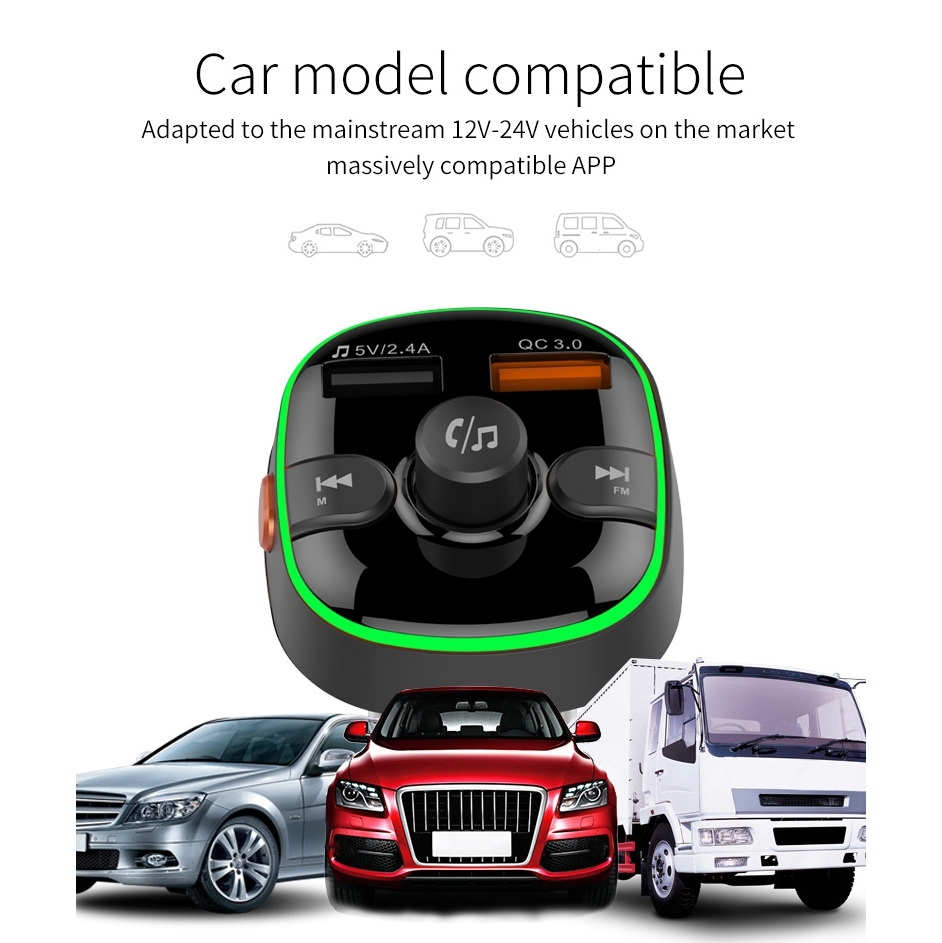 Bluetooth Car 5.0 FM-передатчик для автомобиля 12V-24V QC 3.0 Fast Charge HandsFree Вызов USB Audio MP3 Player 7 цветных адаптера