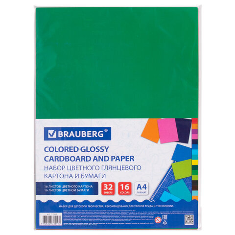 Набор картона и бумаги А4 мелованные (картон 16 л. 8 цветов, бумага 16 л. 16 цветов), , 113566