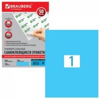 Этикетка самоклеящаяся Brauberg 127510, А4, 1 этикетка 210х297 мм, голубая 70 г/м2, 50 л.