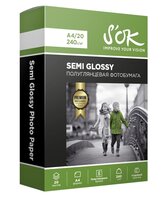 Фотобумага S’OK Premium S'OK полуглянцевая, формат А4, плотность 240г/м2, 20 листов