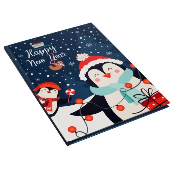 10 шт. Записная книжка А5, 80 листов в клетку 'Пингвины у ёлки', твёрдая обложка, твин-лак