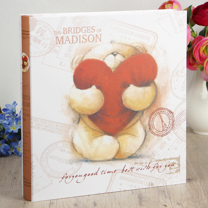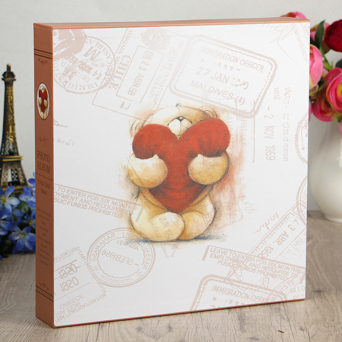 Фотоальбом 256 фото 13х18см,364 фото 10х15см Мишка с сердем-подушкой, в кор. 35х33,5х6,5см