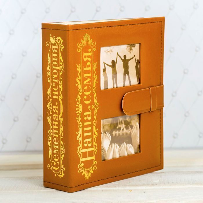 Фотоальбом кожзам на 200 фото с 2 местами под фото на обложке Наша семья