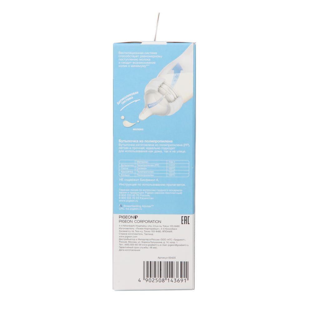 Пиджен бутылочка Перистальтик плюс широкое горлышко 240мл 14371