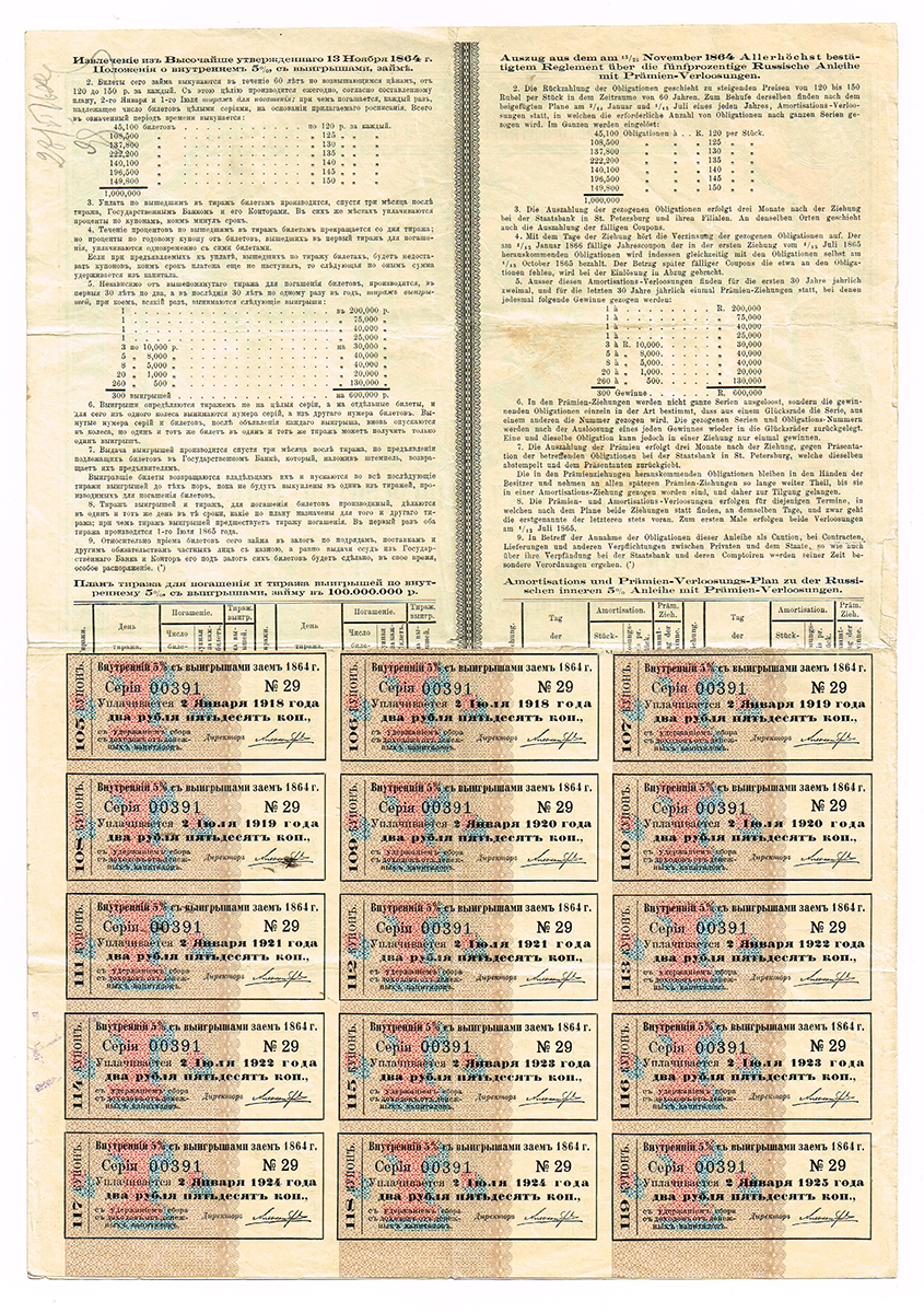 Купон Закладного листа Дворянского земельного банка выпуска 1903 г. на сумму 2 рубля.