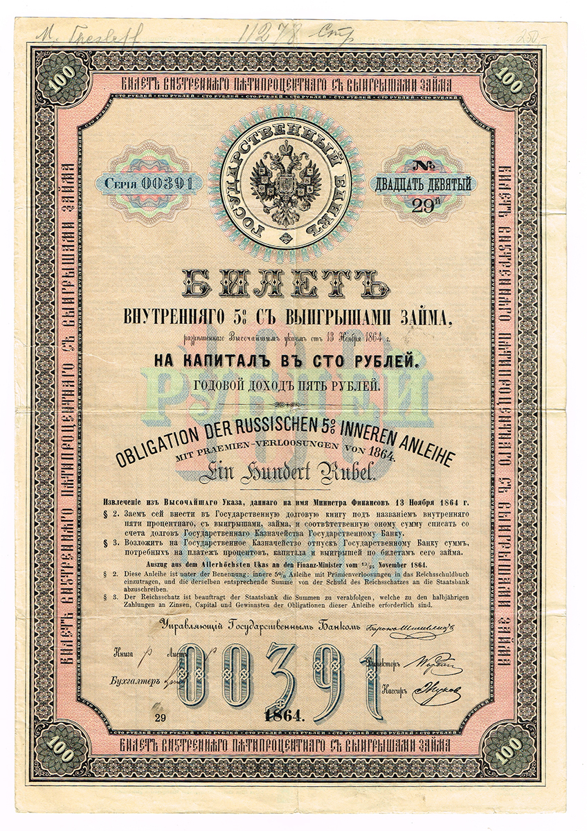 Свидетельство на 1000 рублей Государственной ренты, 1902 год