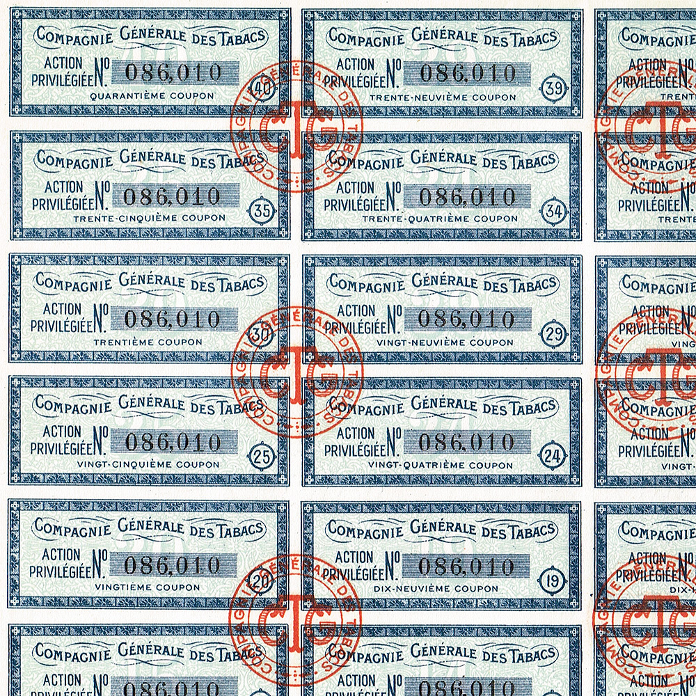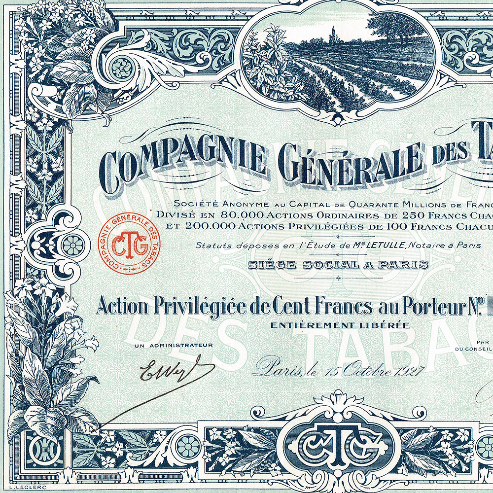 Привилегированная акция табачной компании Compagnie generale des tabacs