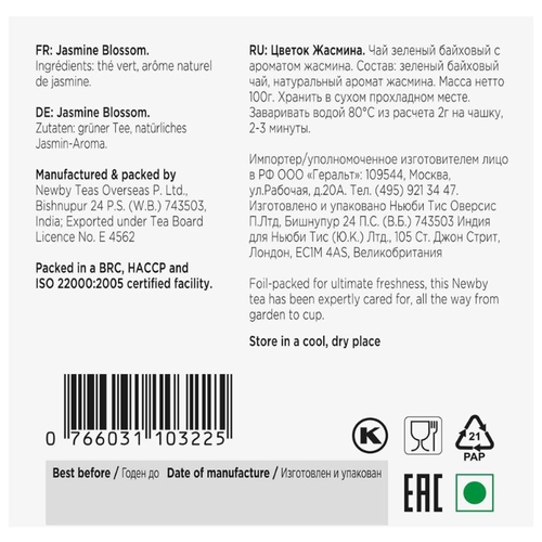 Чай зеленый Newby Heritage Jasmine blossom
