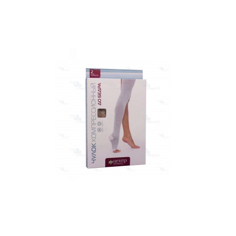 Чулок компрессионный кругловязаный ЧККВ "ЦК" до бедра с откр.мыском компр.2 крем,разм.2