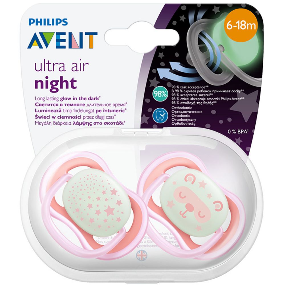Филипс Авент Пустышка ультра эир ночная 6-18 мес д/девочки №2 SCF376/12