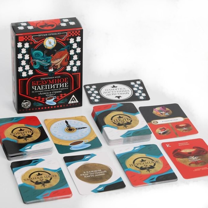 Карточная игра "Безумное чаепитие" по мотивам сказки "Алиса в стране чудес", 113 карт