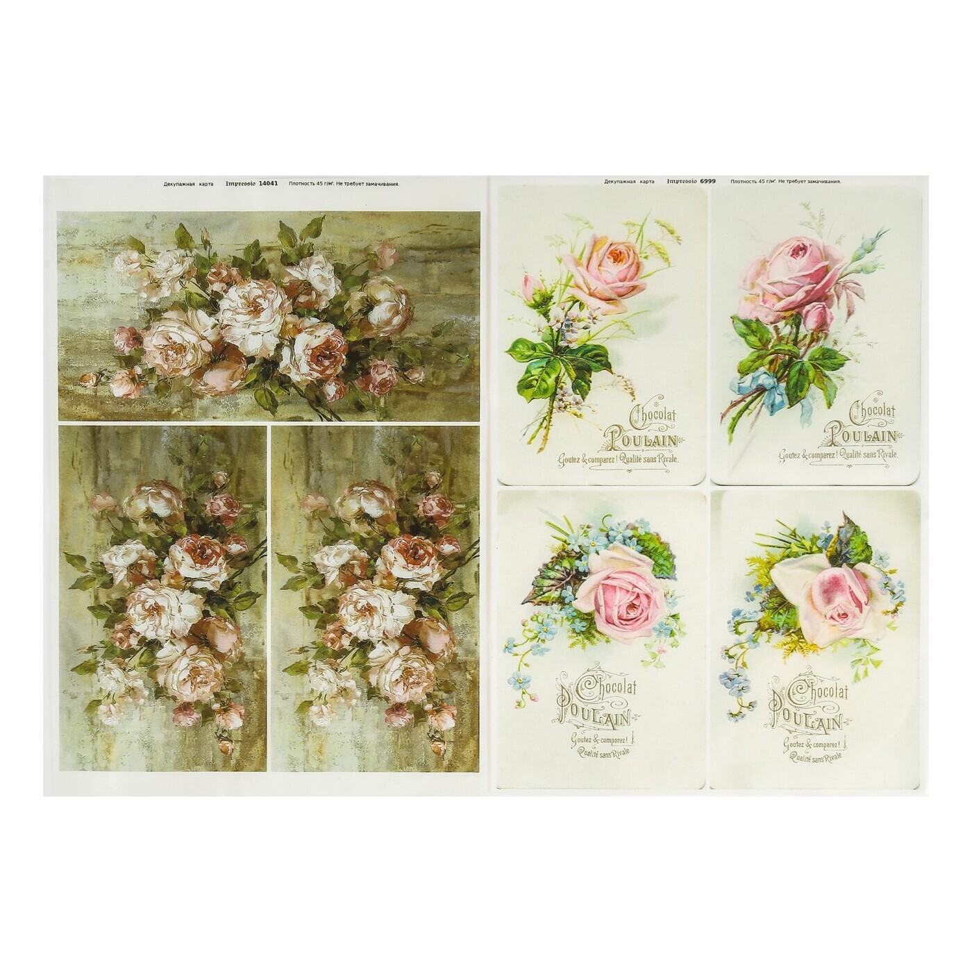 Набор декупажных карт 6 шт "Винтажные розы 2"