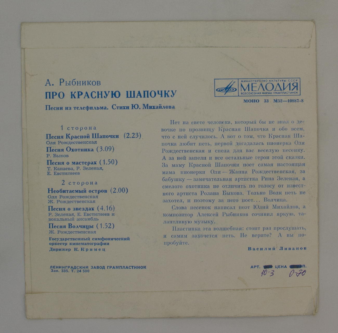 Виниловая пластинка А. Рыбников - Про красную шапочку (песни из телефильма) - 7' (миньон)