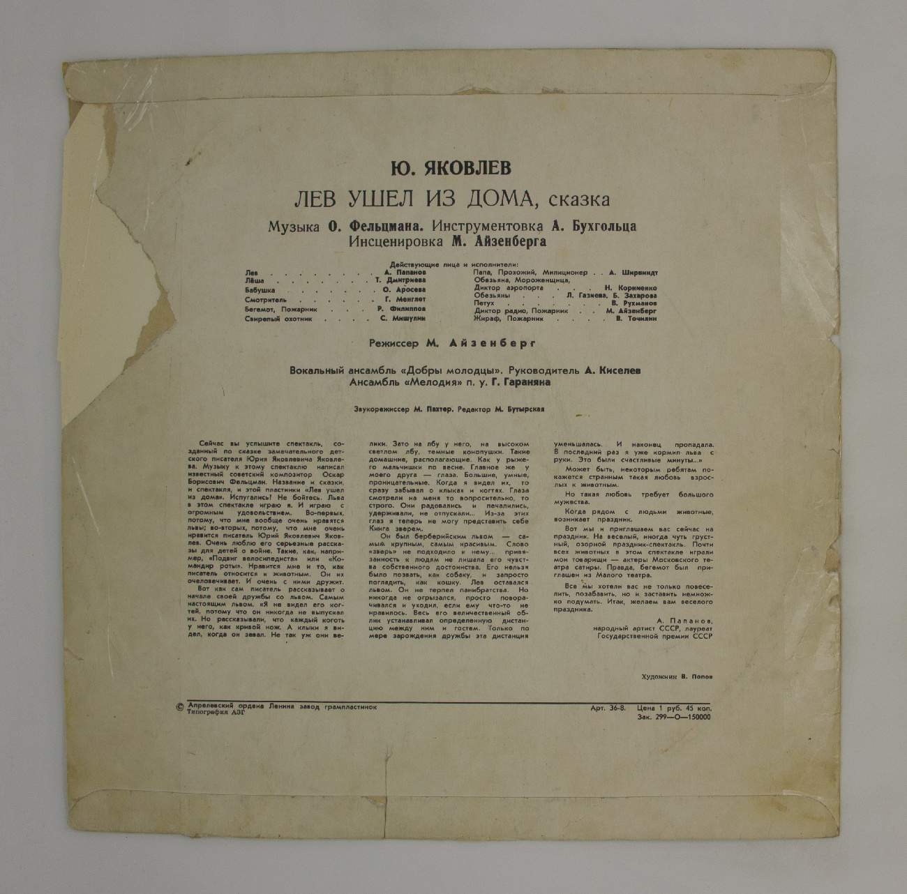 Виниловая пластинка Юрий Яковлев, Оскар Фельцман - Лев ушел из дома, - LP