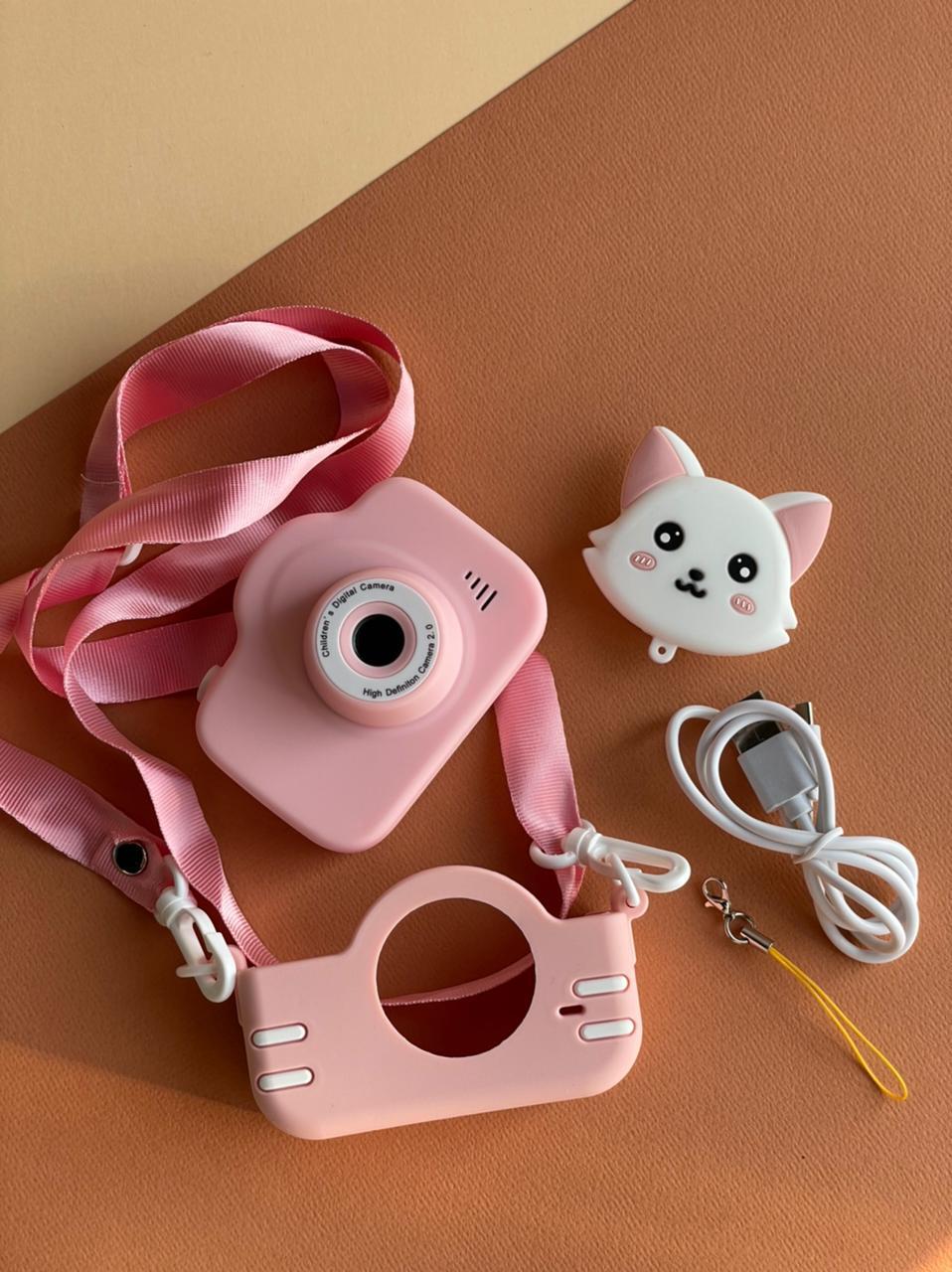 Детский цифровой фотоаппарат розовый Улыбка (Коровка) с селфи-камерой + подарок