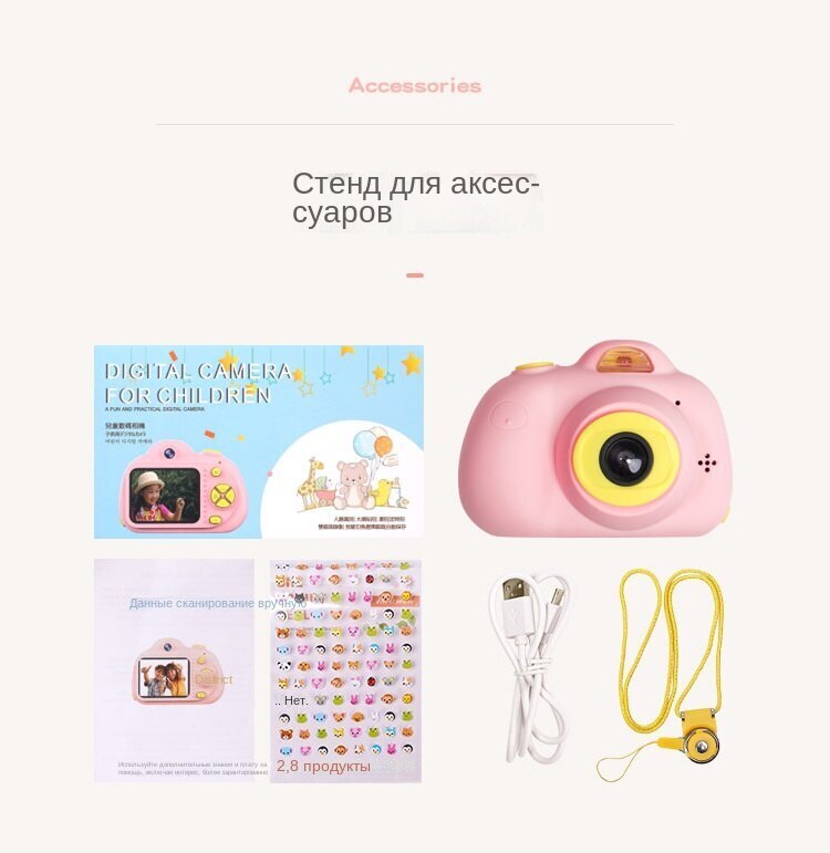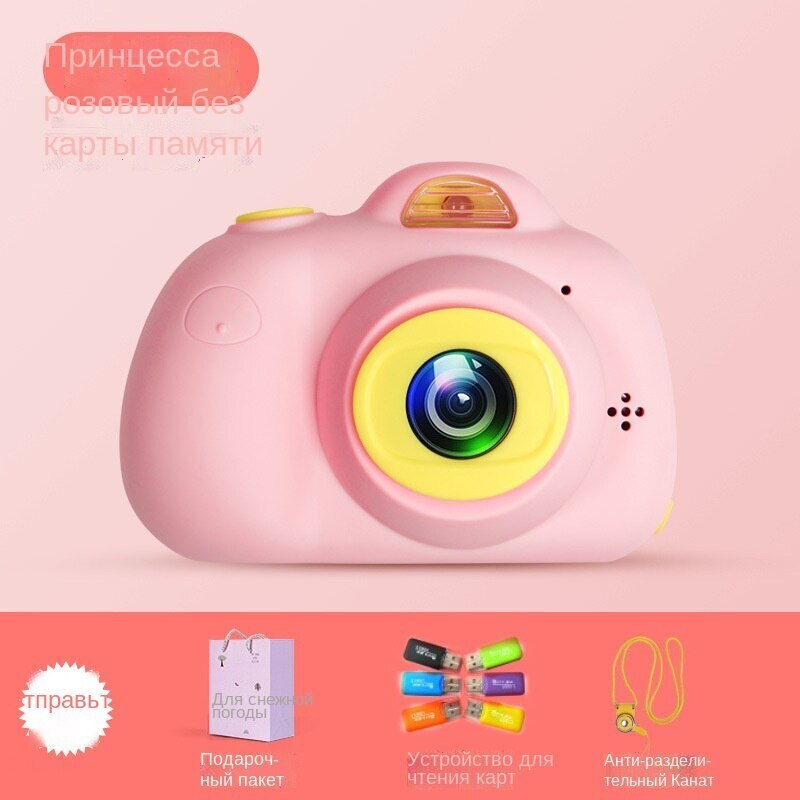 Детский цифровой фотоаппарат розовый Кошечка/Котик с селфи-камерой + подарок. Уцененный товар