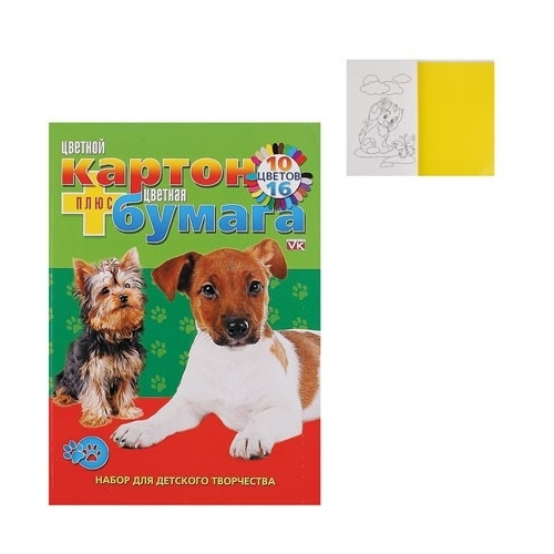 Набор цветного картона и цветной бумаги VK Щенки Hatber, A4, 26 л., 26 цв.