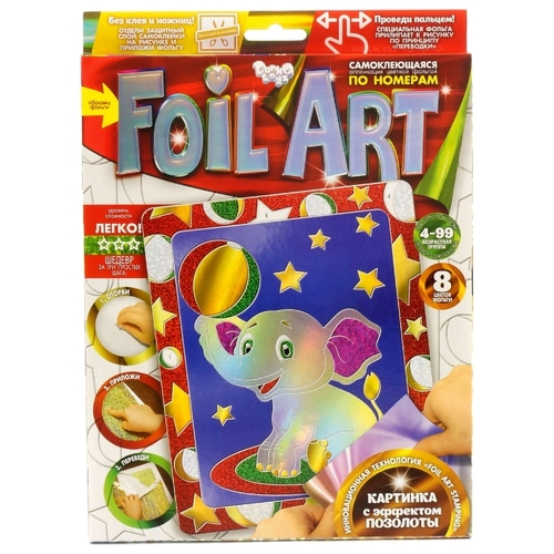 Danko Toys Аппликация цветной фольгой Foil Art по номерам Слоник (FAR-01-10)