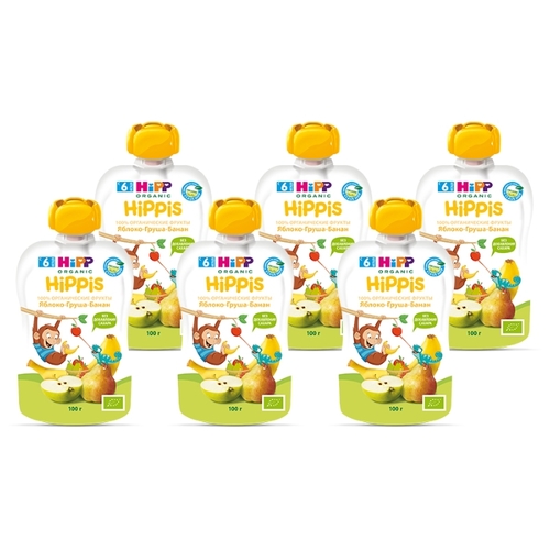 Пюре HiPP яблоко-груша-банан (с 6 месяцев) 100 г, 6 шт