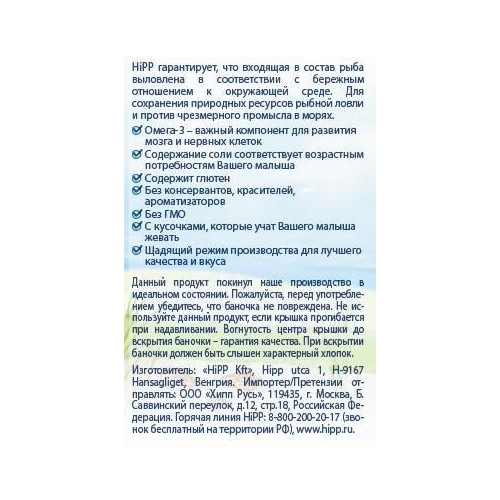 Пюре HiPP макароны с морской рыбой и овощами в томатном соусе (с 12 месяцев) 220 г, 1 шт