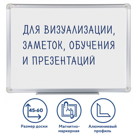 Доска магнитно-маркерная 45х60 см, алюминиевая рамка, ГАРАНТИЯ 10 ЛЕТ, 235461