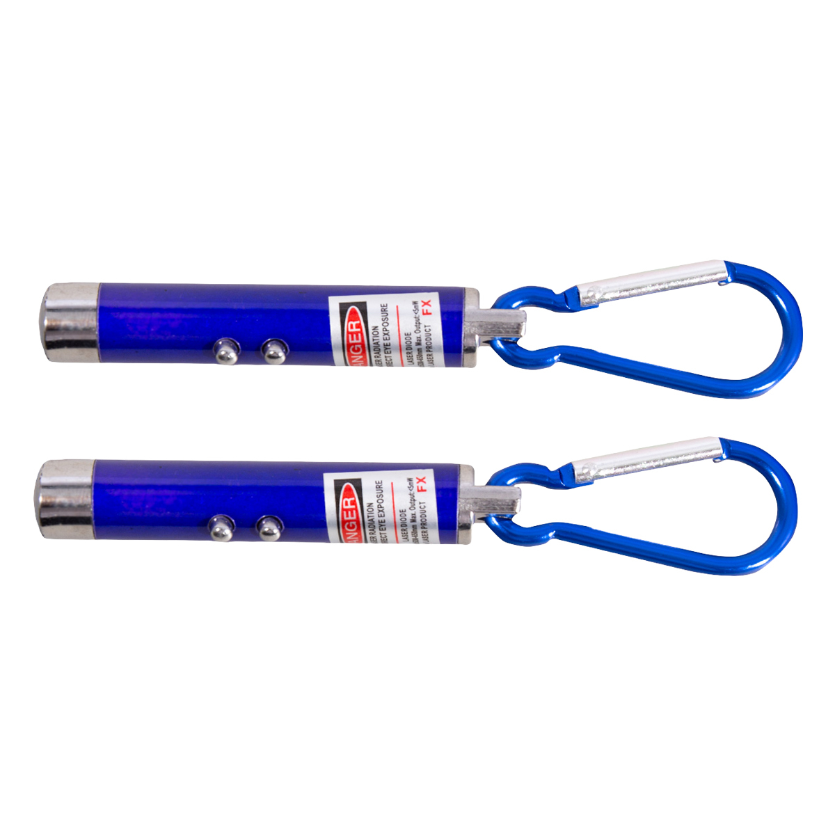 Комплект из 2 шт. лазерных указок с фонариком и карабином синие