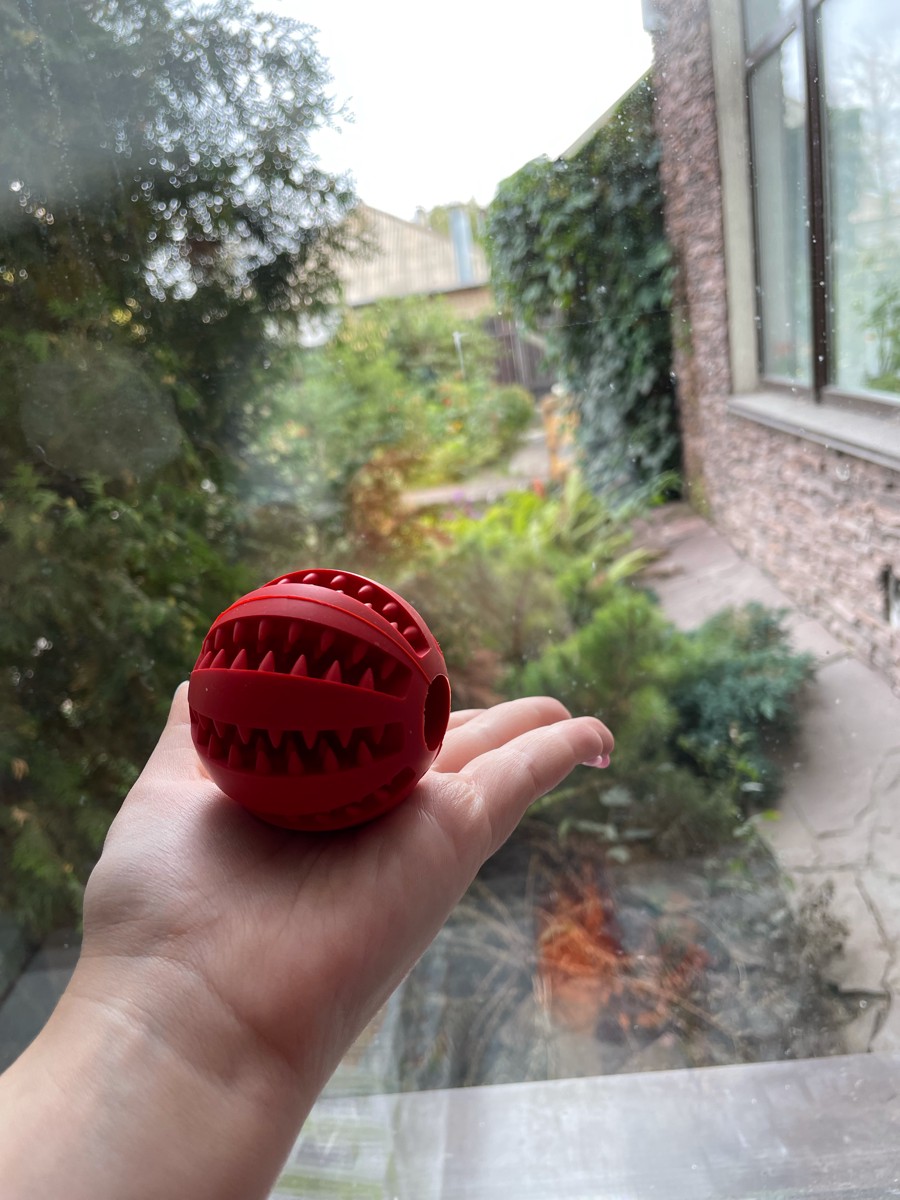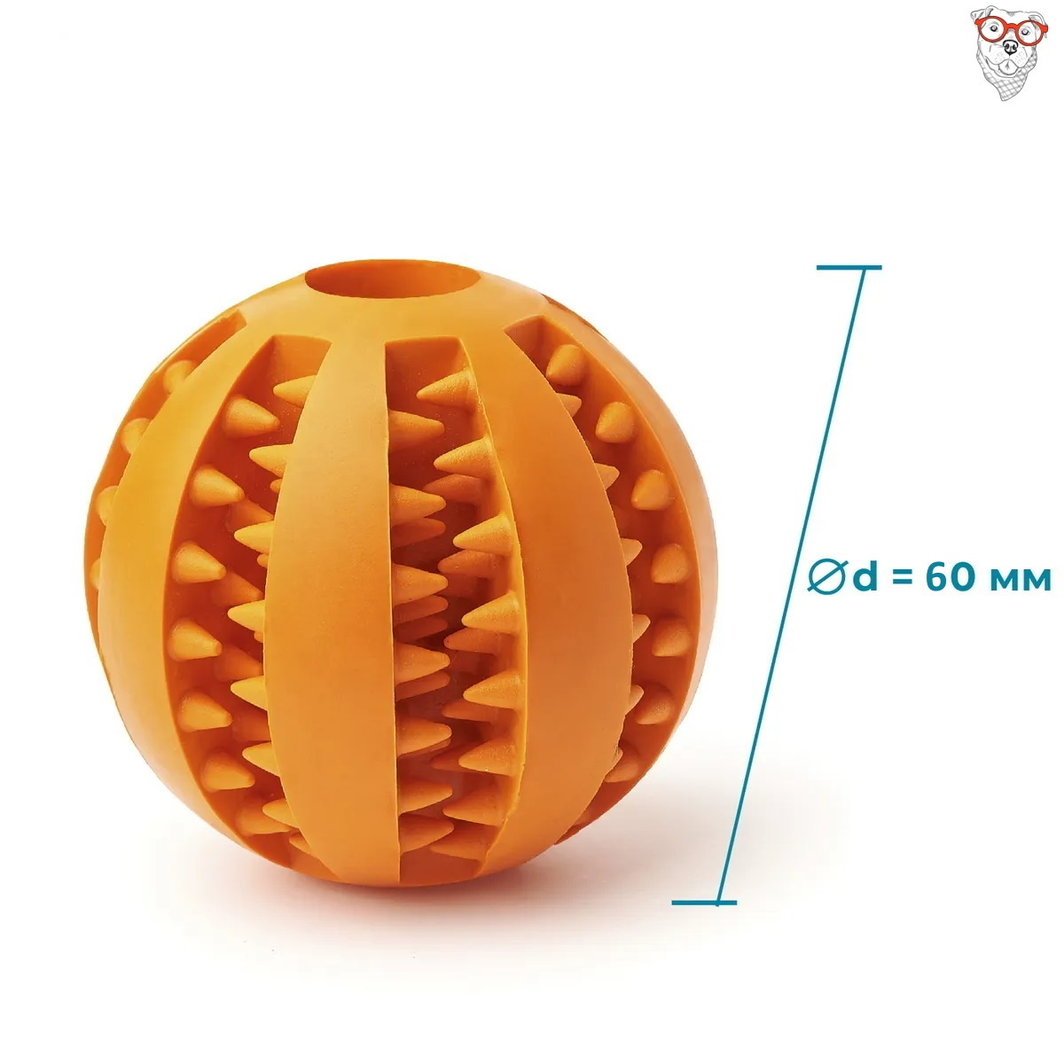 Жевательная игрушка для собак мяч "Здоровые зубки", для лакомств и еды, с шипами, оранжевый, 6 см