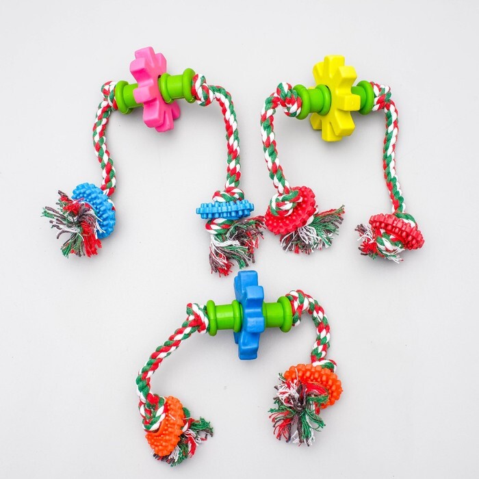Игрушка канатная с жевательными элементами "Шестерёнки", до 34 см, до 100 г, РАЗНЫЙ цветов