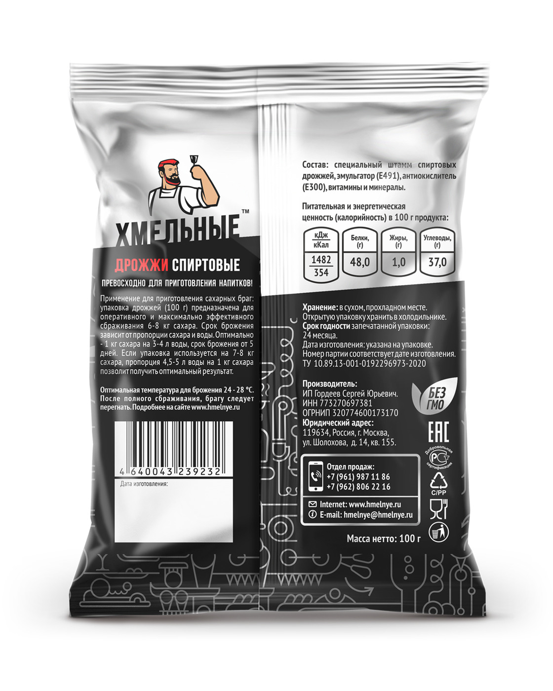 Дрожжи спиртовые, Хмельные 40 штук по 100 г.