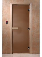 Дверь для сауны и бани стеклянная, короб осина 1700х700мм (бронза, 8 мм, 3 петли 715)