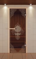 Дверь для сауны DoorWood (Дорвуд) 80x200 Престиж (с рисунком) Венеция правая (бронза)