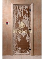 Дверь банная DW 700*1900 бронза матовая с рисунком левая ольха