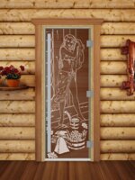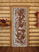 Дверь для сауны DoorWood (Дорвуд) 80x190 Престиж (с рисунком) Береза правая (бронза)