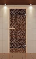 Дверь для сауны DoorWood (Дорвуд) 60x190 Престиж (с рисунком) Восточная арка левая (бронза)