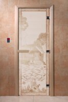 Дверь для сауны DoorWood (Дорвуд) 70x170 Основная серия Банька в лесу (сатин)