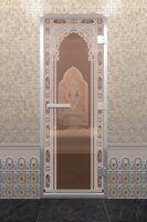 Дверь для турецкой бани DoorWood (Дорвуд) 90x200 Алюминиевый профиль Черное с рис. Восточная арка