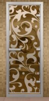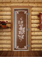 Дверь для сауны DoorWood (Дорвуд) 80x190 Престиж (с рисунком) Розы левая (бронза)