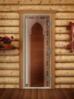 Дверь для сауны DoorWood (Дорвуд) 70x190 Престиж (с рисунком) Восточная арка правая (бронза)