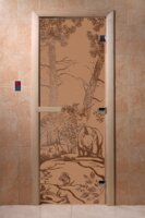 Дверь для сауны DoorWood (Дорвуд) 80x200 Основная серия Мишки в лесу (бронза матовое)