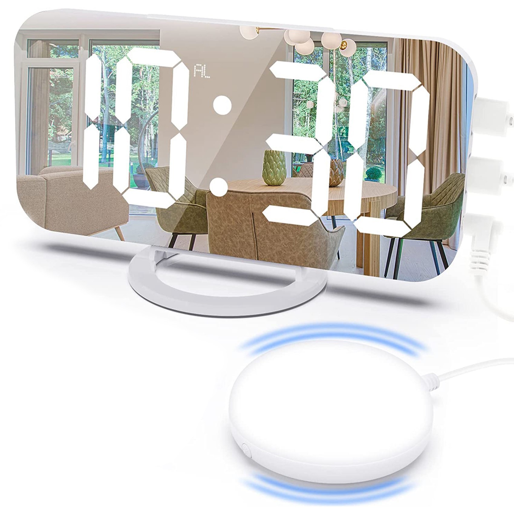 Цифровой Будильник,Вибрационный Будильник,с 2 USB-зарядкой Белого Цвета