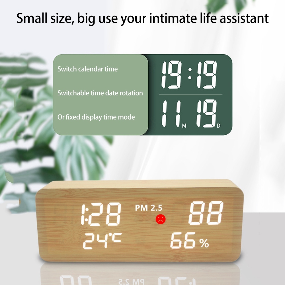 Будильник с большим дисплеем, цвет дерева часов обнаружения температуры