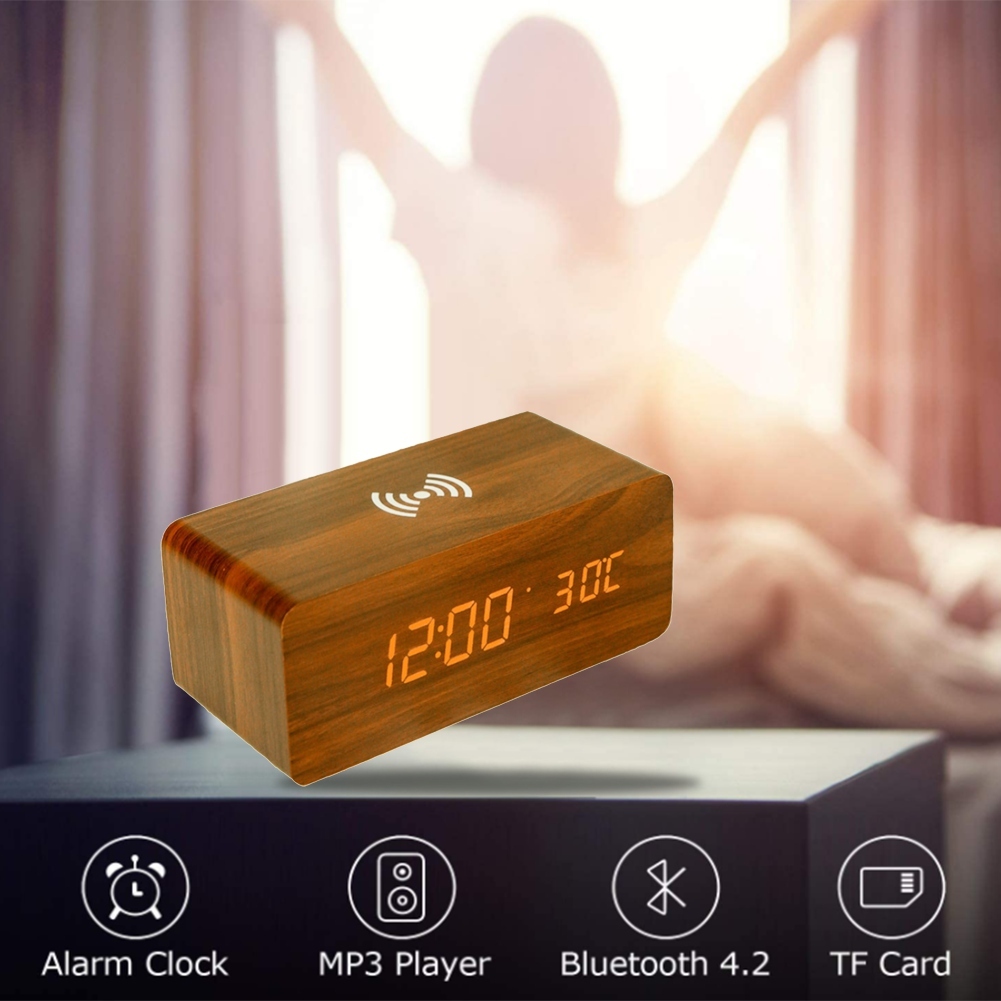 Электронные часы, Деревянные часы с беспроводной зарядкой для мобильных телефонов, LED