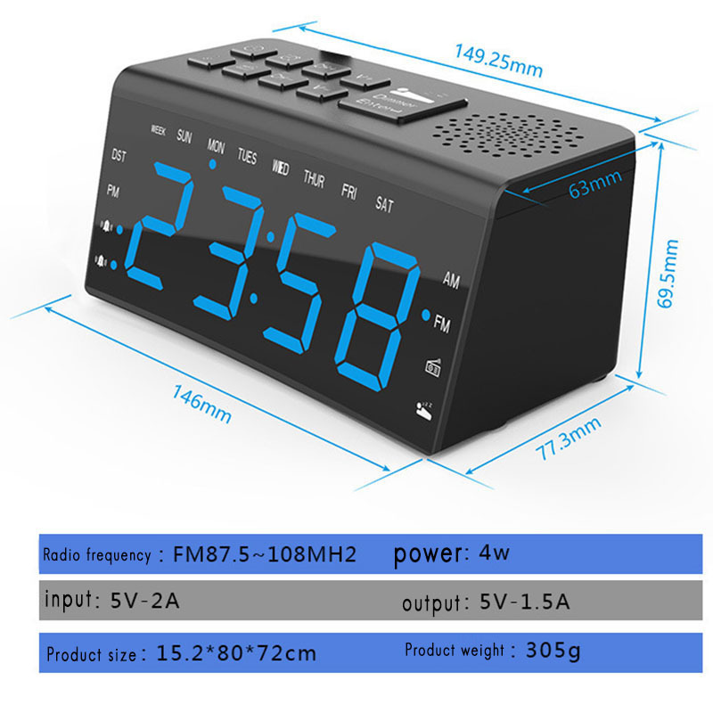 Цифровые радиочасы RA002 с двойной сигнализацией и регулировкой температуры с подсветкой