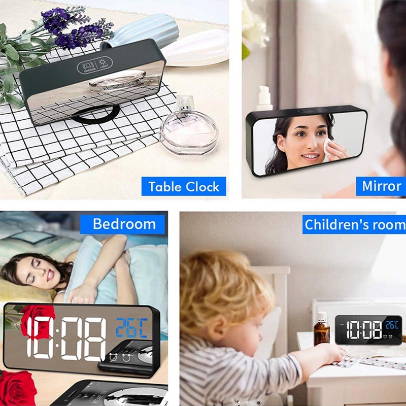Электронный будильник LED Mute используется как зеркало для макияжа, белый