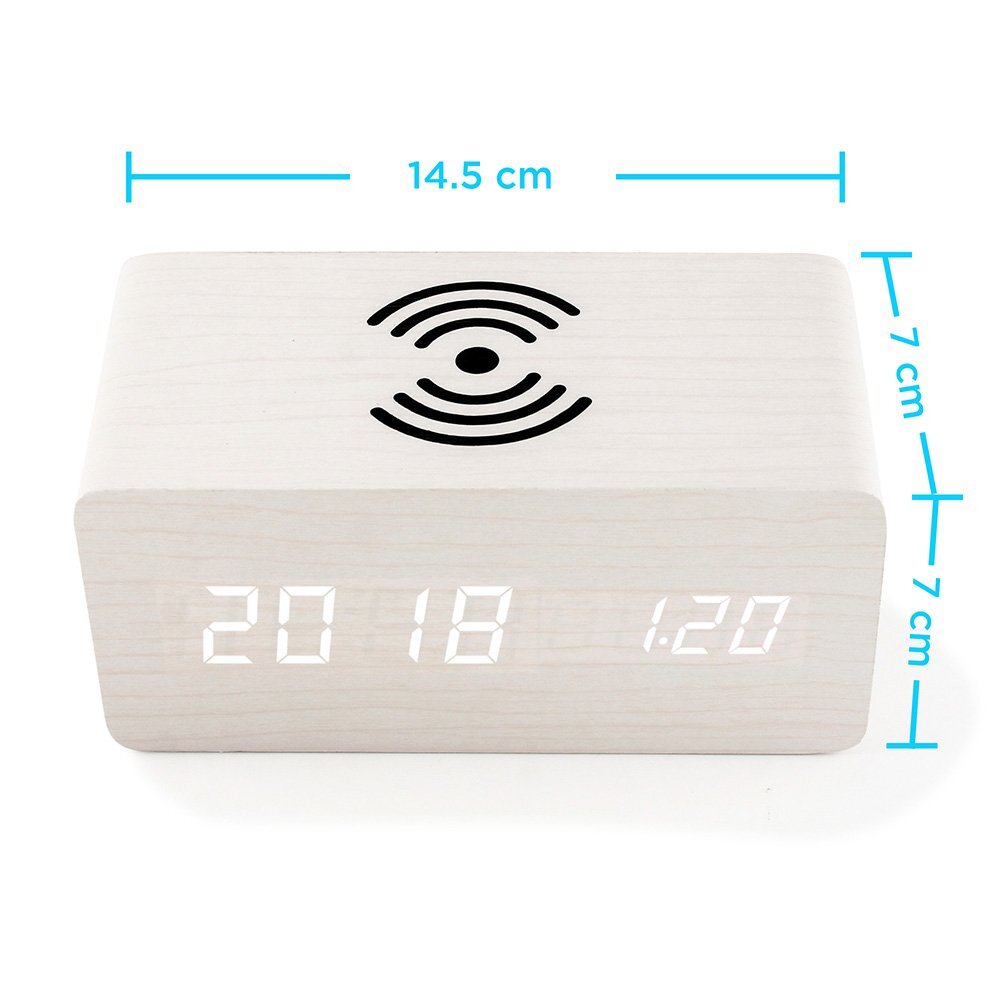Деревянный будильник с беспроводной зарядкой Qi - белый