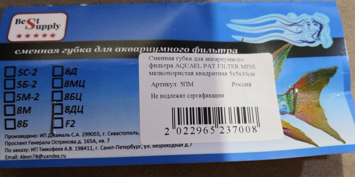 Сменная губка для аквариумного фильтра AQUAEL PAT FILTER MINI, мелкопористая 5х5х10см 5ПМ