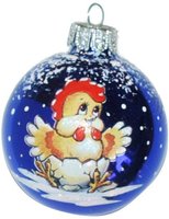 Стеклянное елочное украшение шар 60 мм "Цыплёнок" Коллаж (Ёлочка)