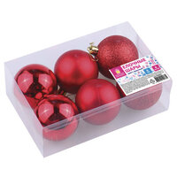 Шары елочные золотая сказка, набор 6 шт., пластик, 6 см, красные (глянец, матовый, глиттер), 590865